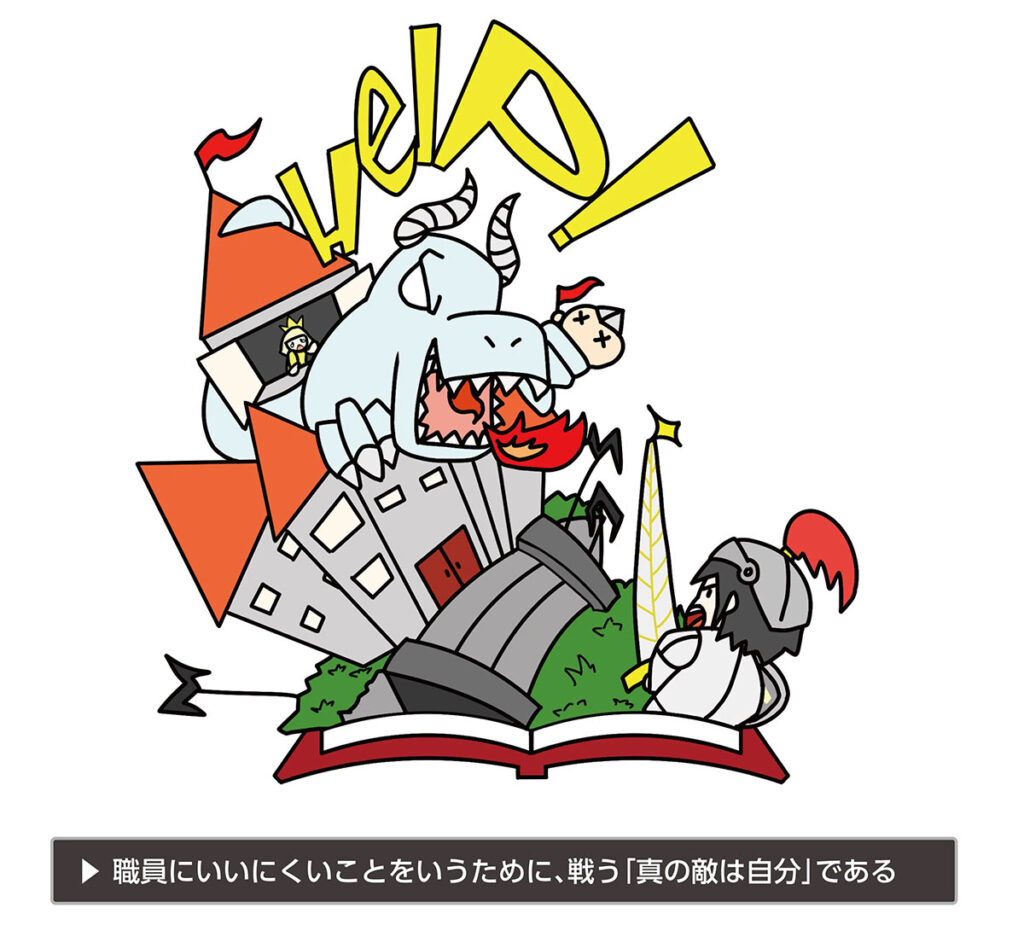まずは職員たちへのヒアリングである。職場で困っていること、問題だと思っていることを面談で聞きとっていくわけだが、すべてを真に受けないよう注意が必要だ。物語世界で竜がすることは万人にとっての「悪行」に決まっているが、ヒアリング時に職員たちが口にする「悪行」は必ずしもそうとは限らない。主観的な意見や個々人の複雑な思惑が入り混じるため、複数の意見から総合的に判断する必要がある。また、問題の種類が多い場合は、優先順位をつけて対処していくことになる。