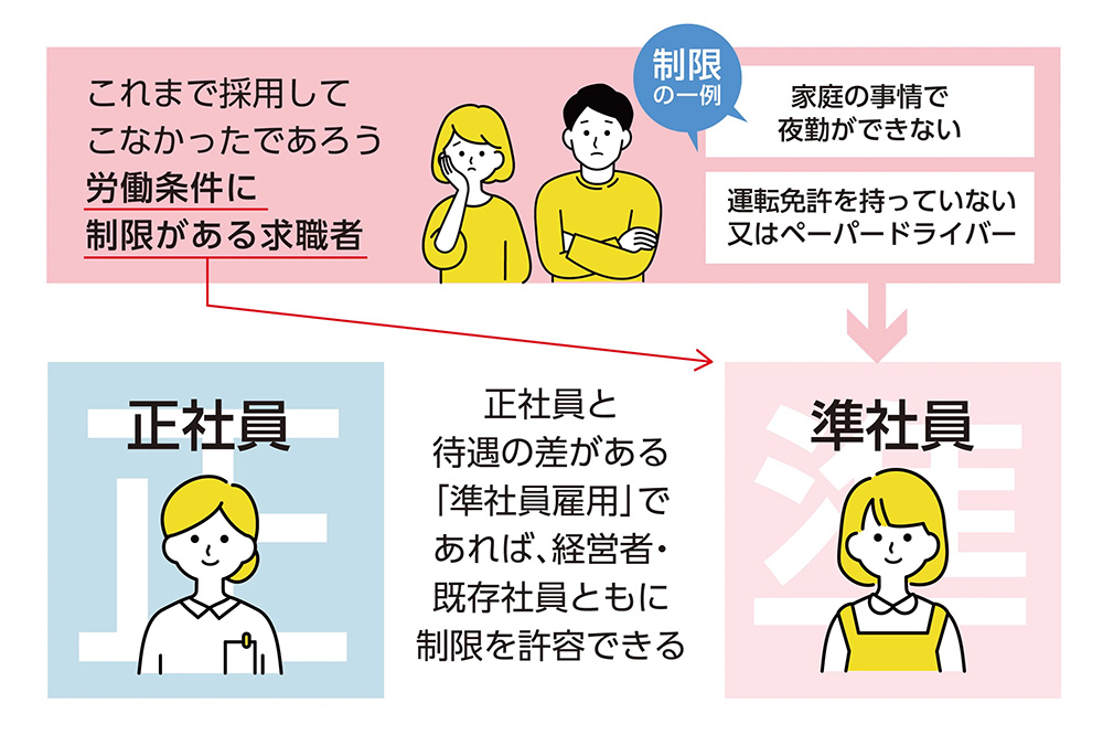 おそらく、こういった人材は、これまで採用してこなかったのではないだろうか。その理由は明確だ。労働条件に制限がある職員のシフトは組みにくいからである。また、既に働いている職員との間に不公平が生じるからである。その気持ちはよくわかる。