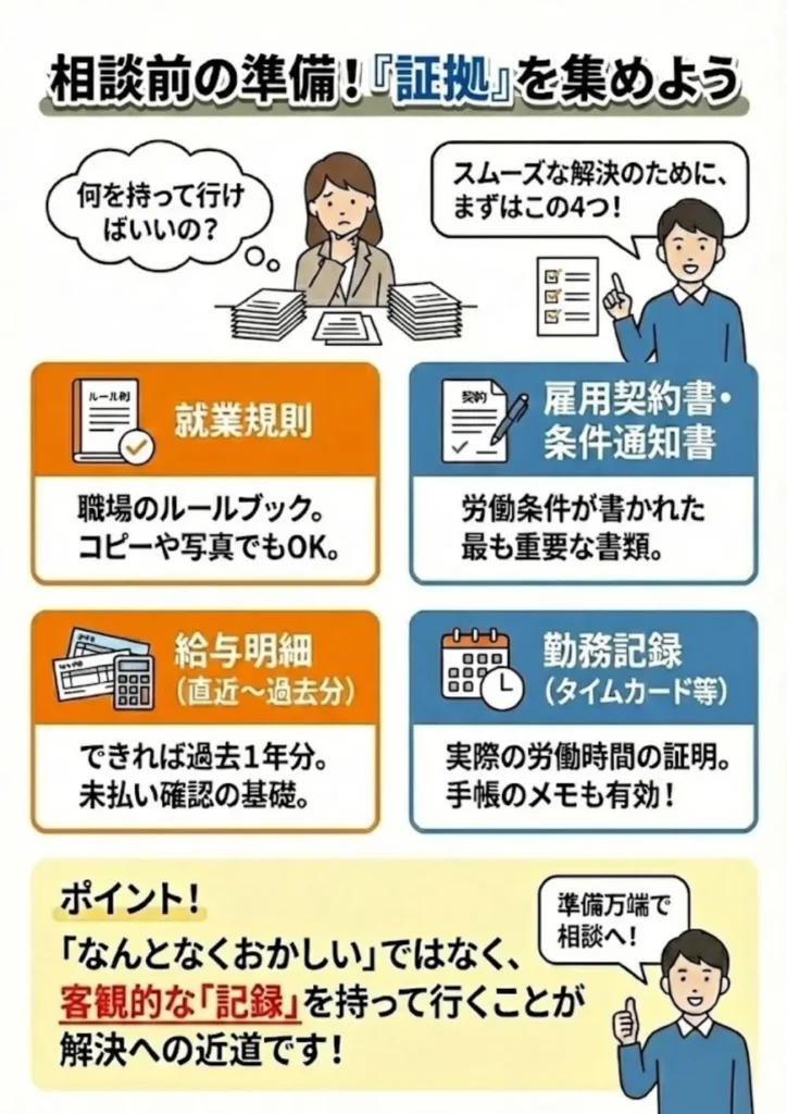 Q&Aでは労働法令の守り方も含めて確認するよう求められているので、「おかしいかも」と思ったら明細やメモを残しつつ、公的な相談窓口につなげていくことが大切です