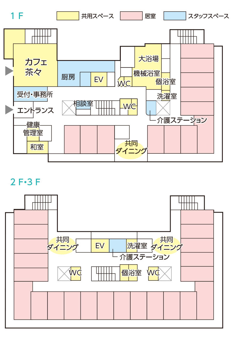 | 入居対象 | 入居時自立、要支援1・2、要介護1~5認定者 |