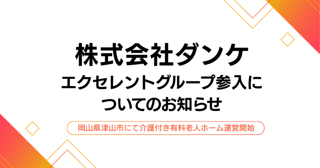 エクセレントグループは、株式会社ダンケの参入を通じて、これまで以上に地域に寄り添った質の高い介護サービスの提供を目指してまいります。
