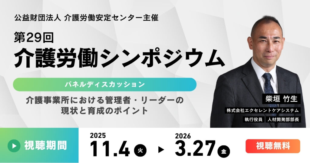 セミナー・研修情報公益財団法人介護労働安定センター主催「第29回 介護労働シンポジウム」に人材開発部部長がパネリストとして登壇いたします2025年11月10日 -